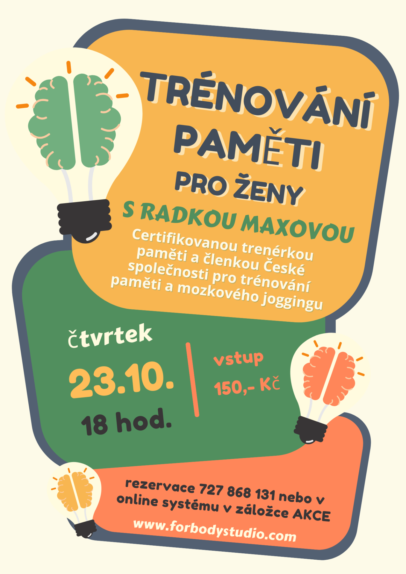 Ve čtvrtek 23. října od 18:00 hod. pořádáme ve studiu For Body speciální večer zaměřený na trénování paměti. Vstupné je 150 Kč.